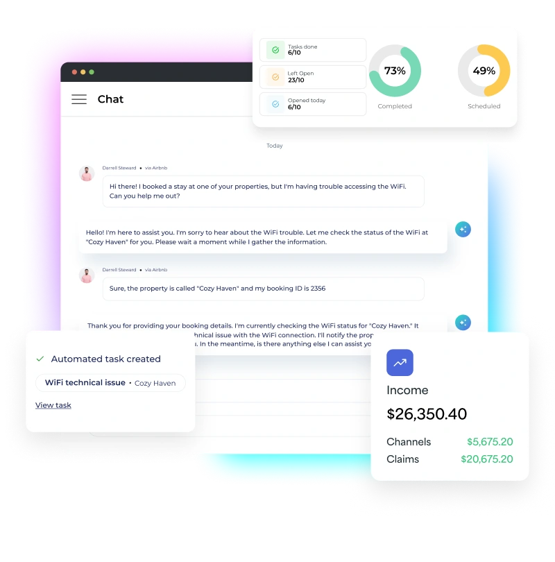 Hostaway covers PMS fundamentals. Boom goes further— AI guest communication + automated ops workflows + owner financial clarity + built-in protection —so your team spends less time coordinating and more time scaling.